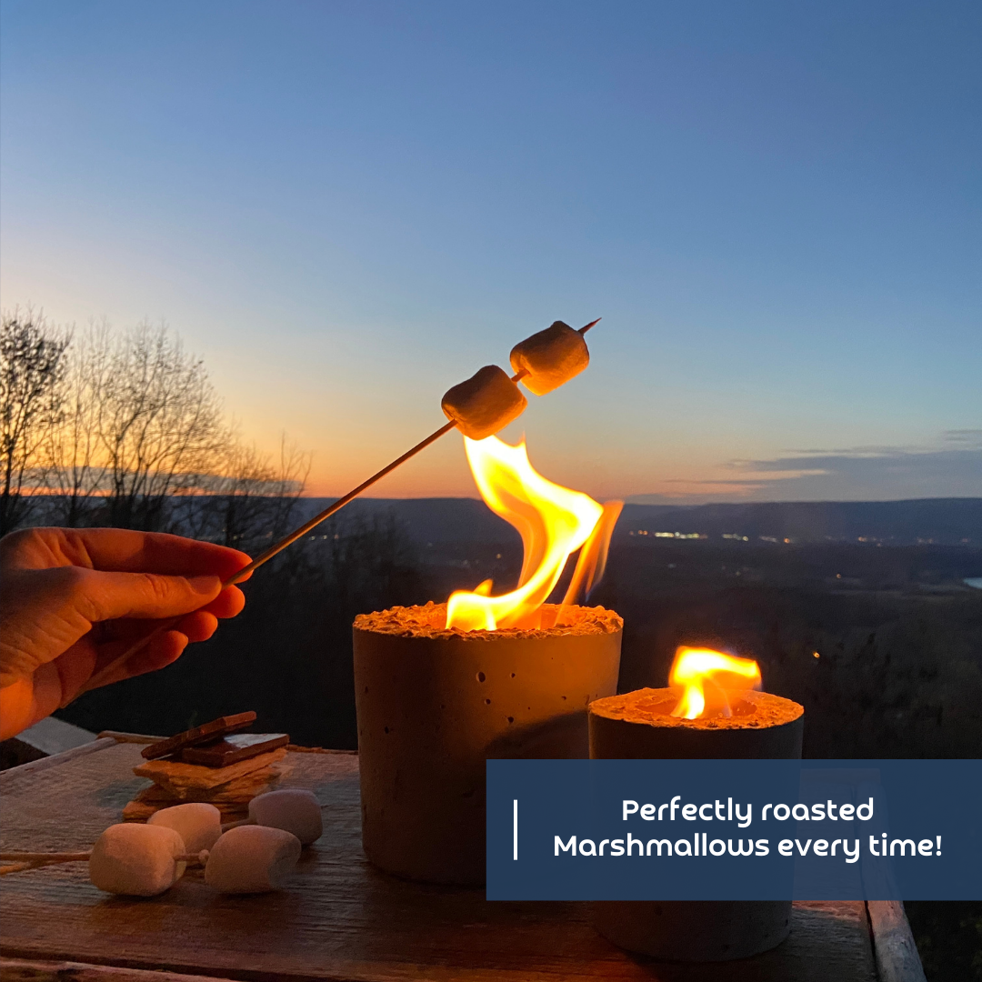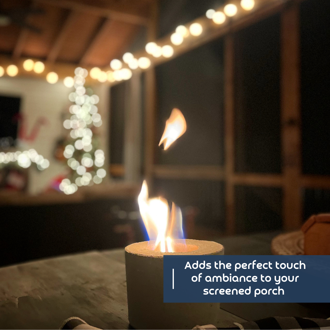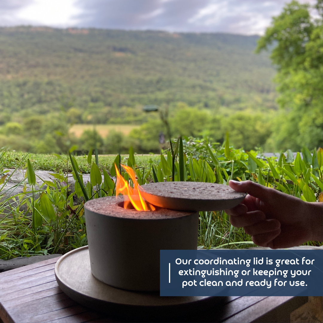 Crafted from solid concrete, each fire pot features a center reservoir for easy alcohol pouring and comes with a stylish concrete lid, making it both a functional fire source and an elegant decor piece. The flame ignites easily with a stick lighter, burning cleanly above the pot using natural evaporation. Whether on a patio, deck, porch or dock, Simply Lit Fire Pots provide a beautiful ambiance for any gathering. Perfect for roasting marshmallows, sipping coffee at sunrise, or relaxing under the stars, these fire pots create cherished moments of warmth and togetherness.
